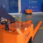 ST-MBT-11-30 Electric A-frame Tow Tractor can lift and tow batch trolleys / A-frames up to 3000kg. It is equipped with a collision protection device on the driving part and behind the running wheels,since it is often used under rough conditions. The waisted carriage allows a very large steering angle. This is particularly advantageous during manoeuvring operations for positioning the trailers. The lifting range of the spherical head and the spherical head diameter can be tailor-made to suit the individual customer’s requirements.
